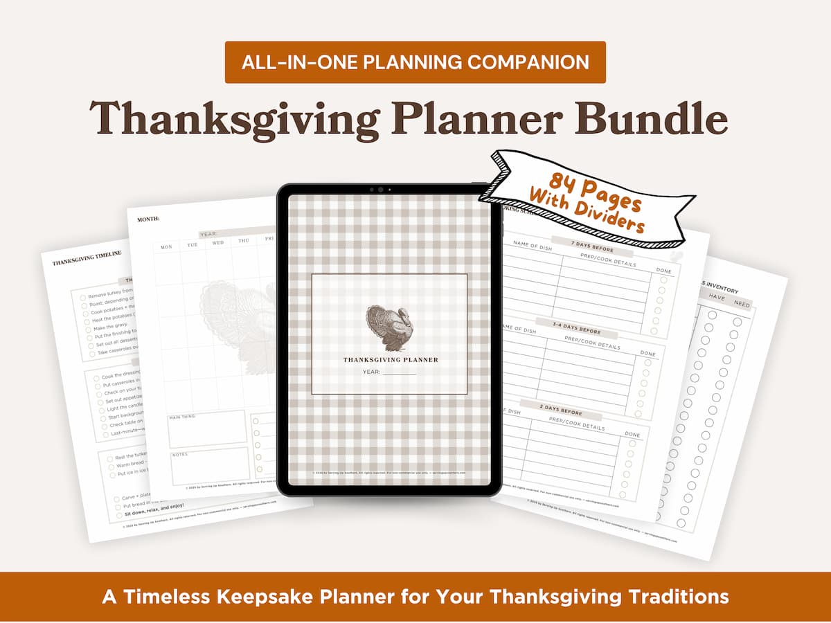 A timeless Thanksgiving planner designed to help you prepare, host, and enjoy the holiday with ease. Simple, thoughtful pages guide you through every step in the days ahead—so the big day feels calm, meaningful, and intentional.